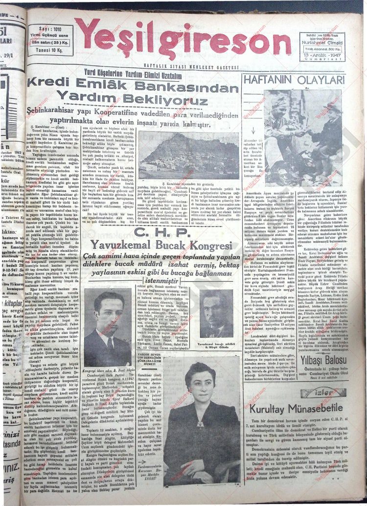 13 Aralık 1947 Tarihli Yeşilgiresun Gazetesi