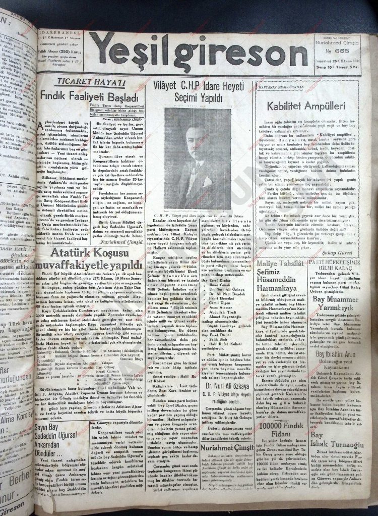 28 Aralık 1940 Tarihli Yeşilgiresun Gazetesi