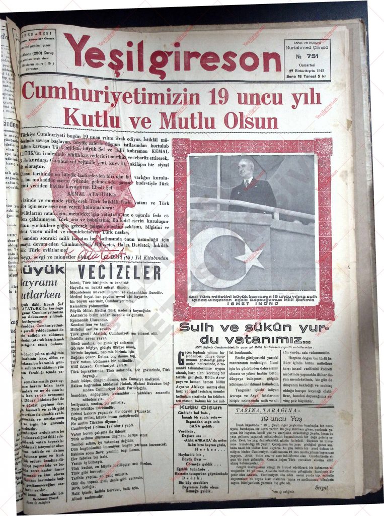 29 Ekim 1942 Tarihli Yeşilgiresun Gazetesi