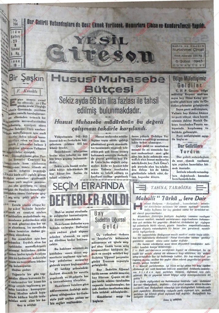 6 Şubat 1943 Tarihli Yeşilgiresun Gazetesi