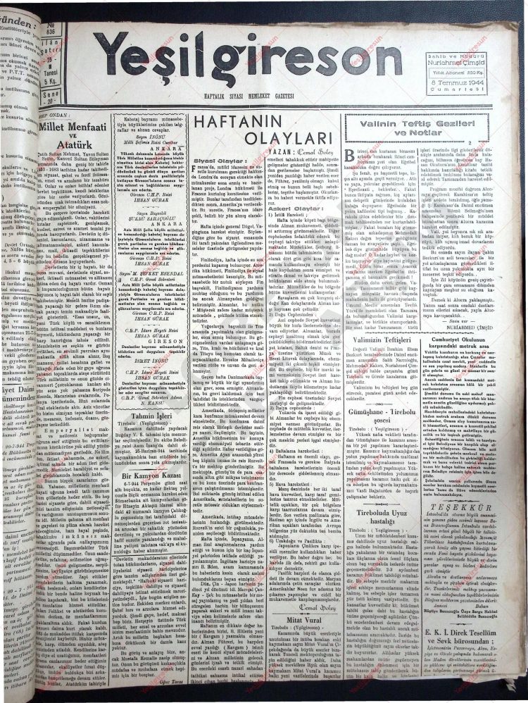 8 temmuz 1944 Tarihli Yeşilgiresun Gazetesi